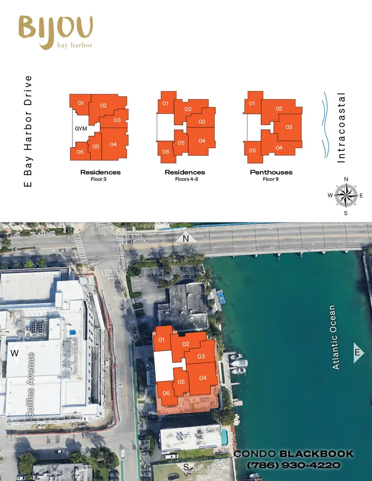 The Bijou offers select units with floor plans ranging from 900 to 2100 square feet, with multiple flooring & lighting options available, and is located only a short walk from the famed Bal Harbour Shops, as well as the exclusive Bal Harbour beach, Inlet and Haulover Park.