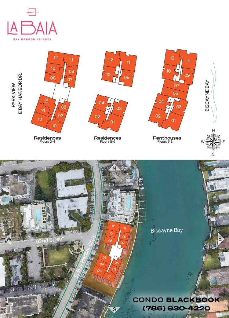 Living at La Baia, residents will be minutes from the top-rated Ruth K. Broad Bay Harbor K-8 School, upscale Bal Harbour Shops, a Publix, and the Indian Creek Country Club. By car, the Miami Museum of Modern Art is 10 minutes, FIU Biscayne Bay Campus is 15 minutes, Aventura Mall is 20 minutes, Faena Bazaar is 20 minutes, and the Miami International Airport is 35 minutes away.