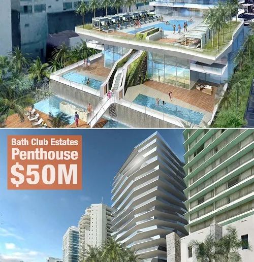 Don Peebles is creating his all new Bath Club Estates project with an asking price of $50 million for a five-bedroom, 9,200 square-foot penthouse that includes an additional 9,000 square-feet of outdoor space. The unit will be the second in the city listed at $50 million. A penthouse at Faena House was listed for the same price.