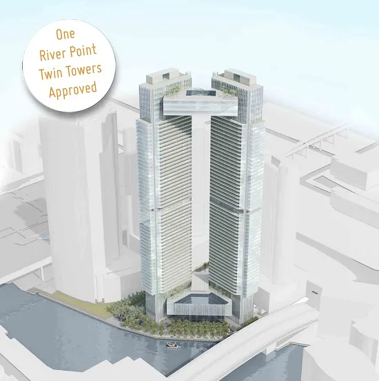 The Planning and Zoning Department of Miami has given approval for the upcoming One River Point towers in downtown Miami.