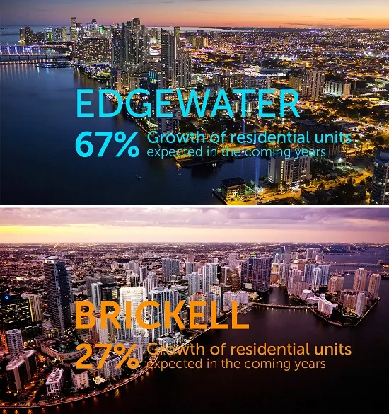 Photo credit: Edgewater - invmia.com Brickell - worldpropertyjournal.com