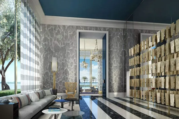For Elysee, Deniot's first-ever condo project in the city, the designer embraced Miami's glamorous mid-century past, taking inspiration from architecture books by Morris Lapidus, the tower's multi-tiered silhouette, and more local elements. Residents will find a sense of refinement in the geometric diamond shapes and retro-style furnishings chosen to create a classic-contemporary space marked by comfort and openness throughout the building.