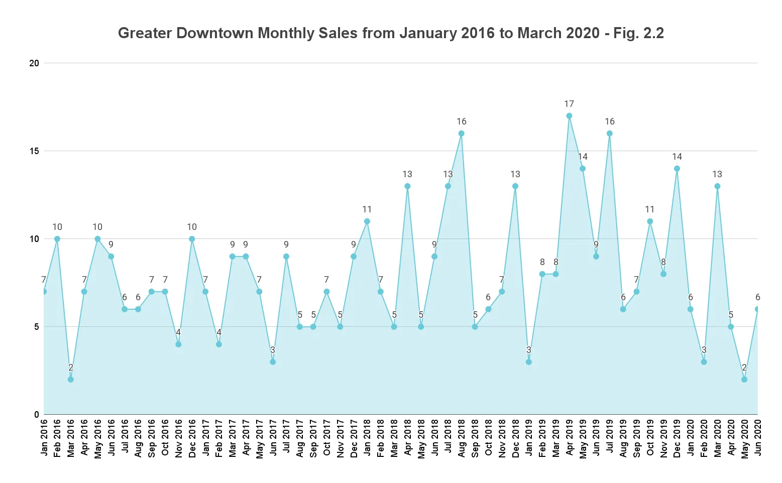 A closer look into the Monthly Sales trends of fig. 2.2 reveals that April and May have been the biggest contributors to this loss in momentum. While April registered only 5 sales against 17 last year, May had no sales to report compared to last year's 14. However, June posted 6 sales compared to 9 in the same month last year, which shows that as the market adjusted to the "new normal," pent up demand did make a comeback.