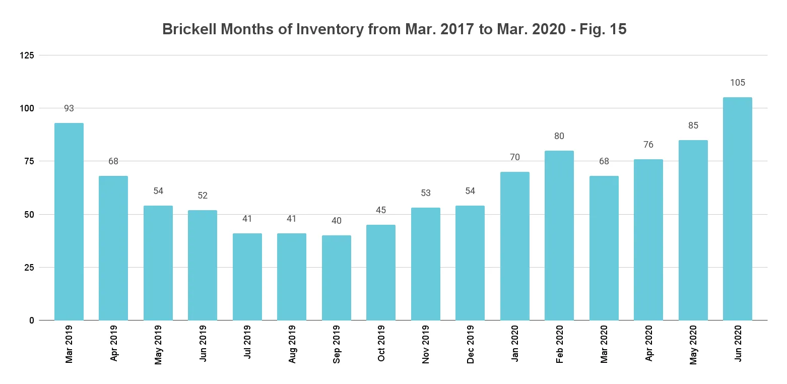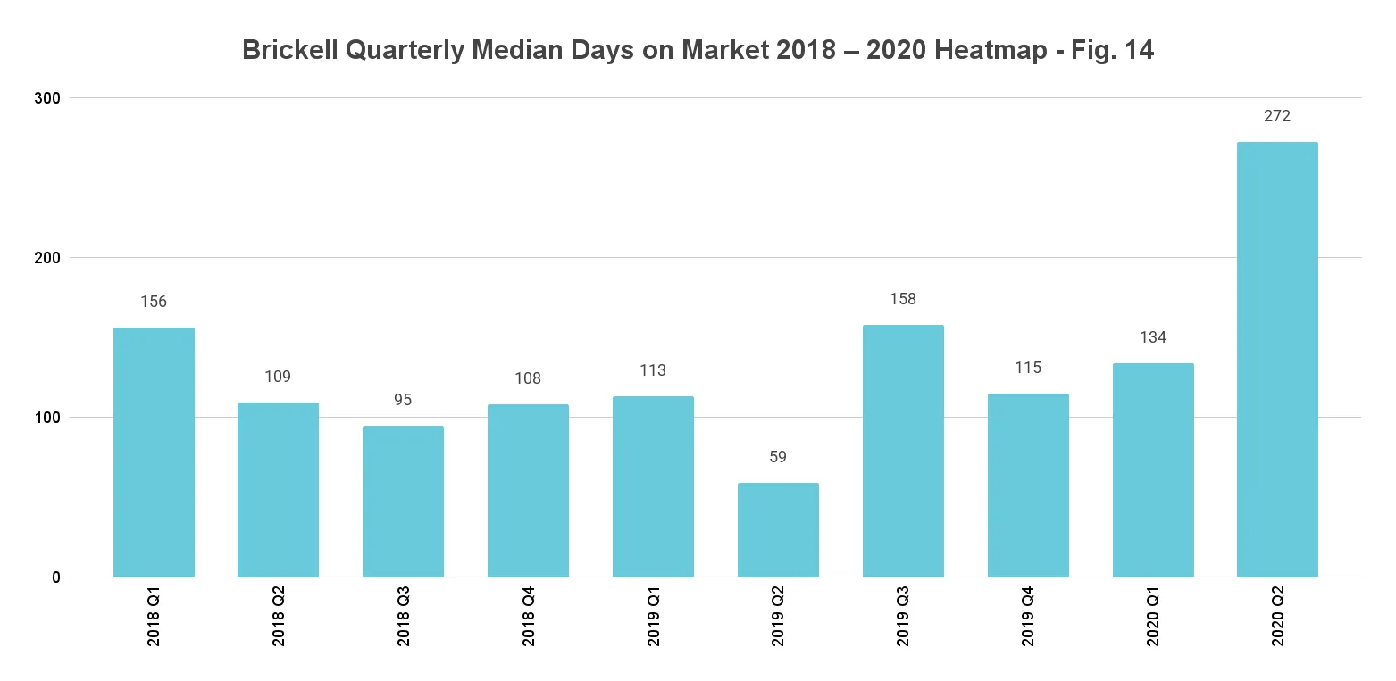 On a quarter-to-quarter basis too, Brickell's luxury condos spent 138 more days on market, increasing from 134 in Q1 this year to 272 in Q2 (fig. 14). It will be worth noting how this metric reacts in the third-quarter as the market tries to normalize to its pre-COVID momentum.