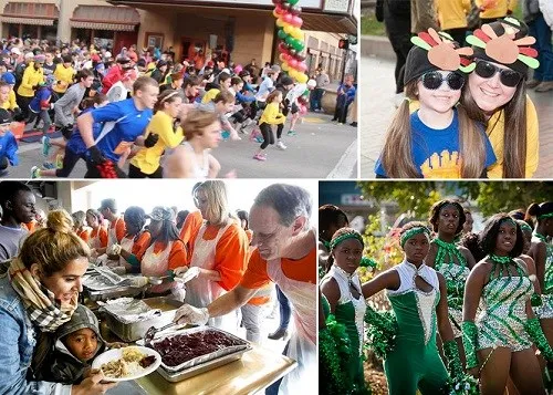 Photo credit: Turkey Day Run - turkeyday-5k.com, Parade - morphoto.com, Volunteer - latimes.com