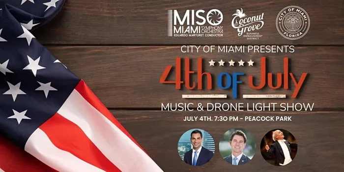 - MISO 4th Of July Celebration at Peacock Park, July 4. Walk into this free evening event to tune into the melodies of the Miami Symphony Orchestra, with fireworks to follow.