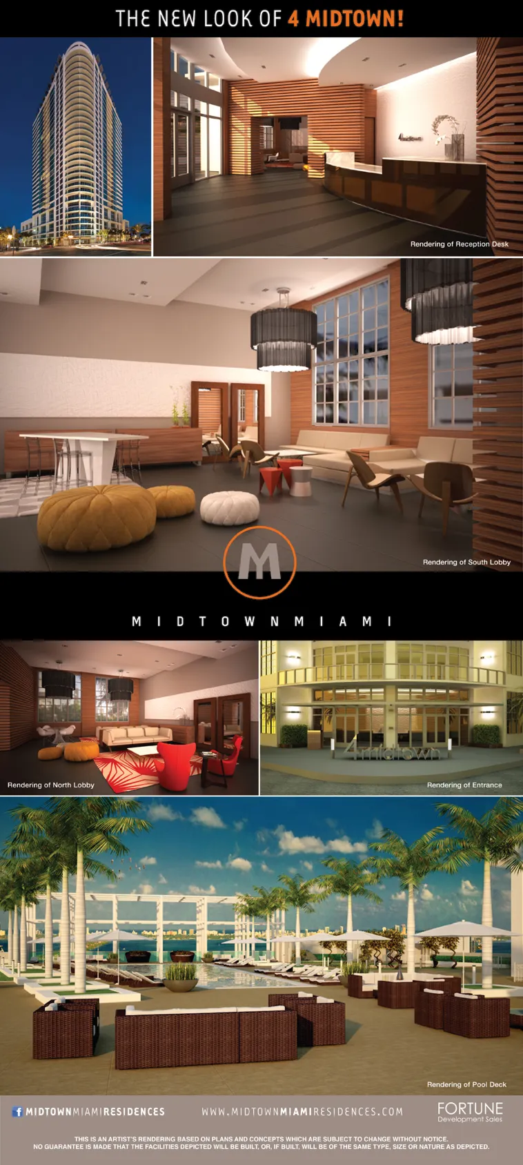 Whether you’re in the mood to mix, mingle or make the scene, 4 Midtown is redefining upscale social living with a redesigned lobby, pool deck and gym. It starts with the spacious ambiance of 4 Midtown’s lobby –redesigned with contemporary luxury touches such as teak woodwork, marble finishes, warm color palettes with bold accents and dual common areas to entertain guests or socialize with friends and family amongst plush, transitional furniture.