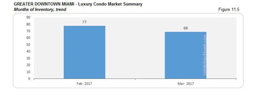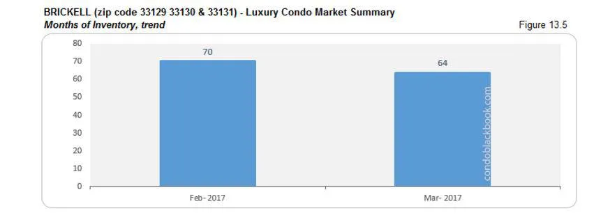 - With an average of 12 deals per month (last 6 months’ average), we’re looking at 64 months of inventory still sitting on Brickell’s luxury condo market. That’s way higher than the 9-12 months normal.