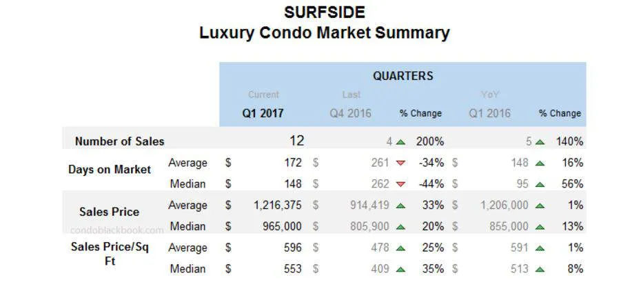 - Given that Surfside’s luxury condo market is a bit modest to get a clear idea on market trends, you can look at Bal Harbour or Miami Beach’s stats for a better idea on where the market’s headed.