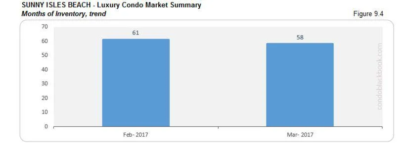 - Based on the average of 15 deals a month (last 6 months’ trend), Sunny Isles Beach still has 58 months of inventory to deal with.