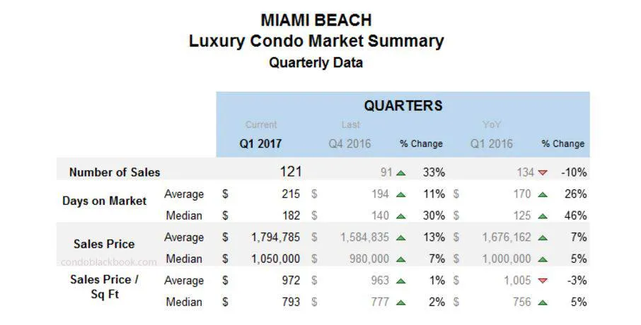 - Miami Beach’s luxury condo trends have been reflective of Miami’s overall trends.