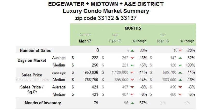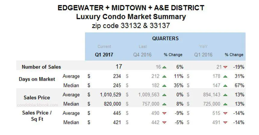 Edgewater + Midtown + A&E District Luxury Condo Market Summary (33132 + 33137 zip)