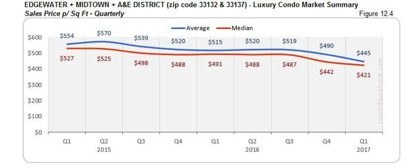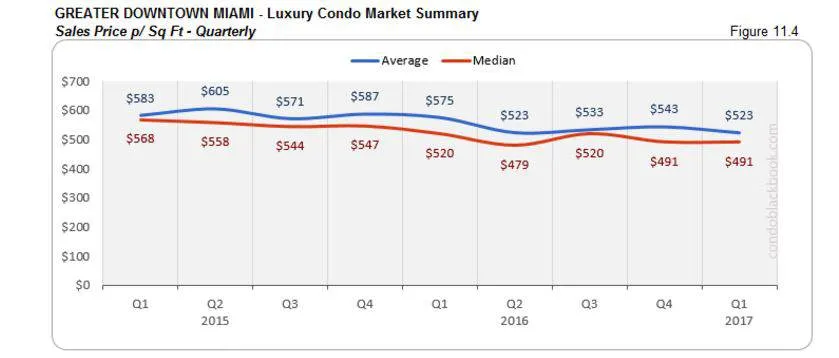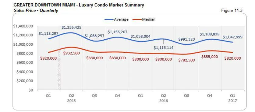 - There is no marked progress in the sales prices either (fig. 11.3 and 11.4), meaning buyers could get into this central neighborhood now, before prices go shooting up again. Click here to search the Greater Downtown Miami area condos for sale.