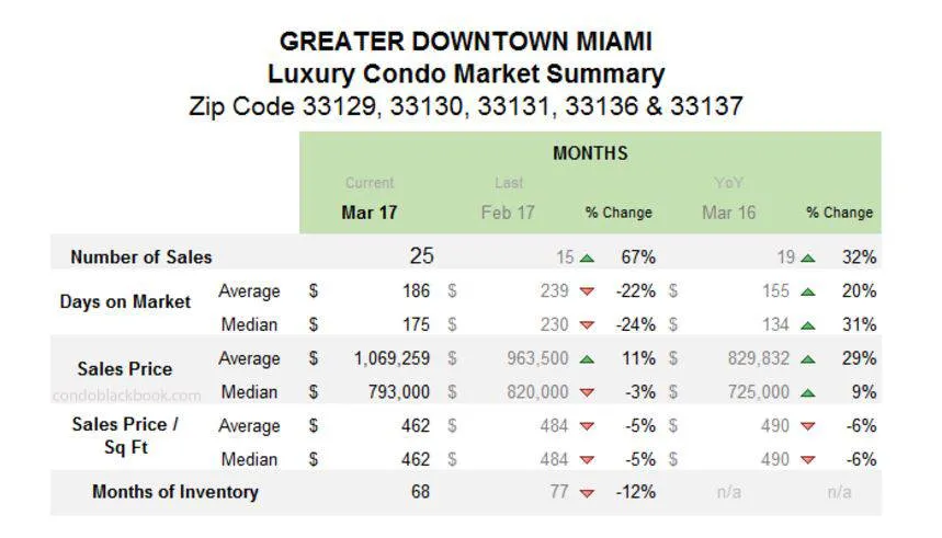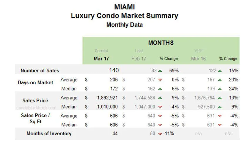 Look below for an insight into Miami’s overall and neighborhood-level luxury condo trends and numbers for March 2017: