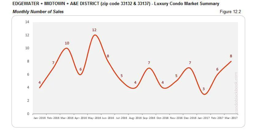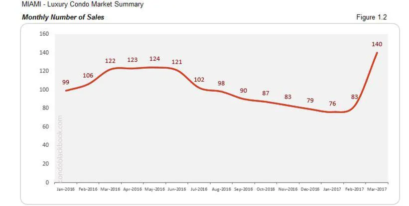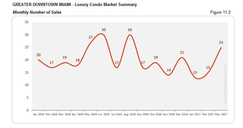 Monthly Number of Sales - Miami Luxury Condo Market Overall