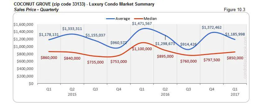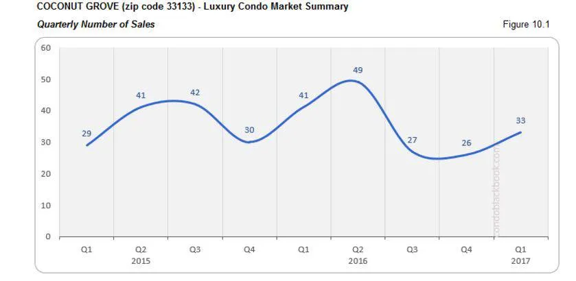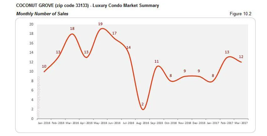 - Coconut Grove may have very well been the early bird in terms of number of sales recovery. It showed improvements in February and sustained those numbers through March (fig. 10.2), thus closing with a 27% increase over the last quarter (see fig. 10.1).