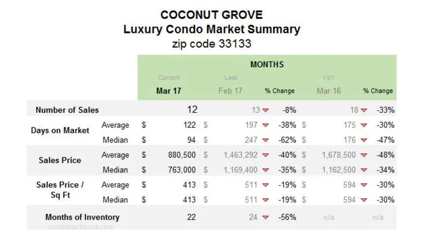 - With the market moving so slowly, buyers have the opportunity to grab great deals in the neighborhood. See what lifestyle options exist in the historic Coconut Grove, or search Coconut Grove condos for sale here.