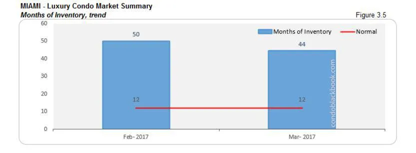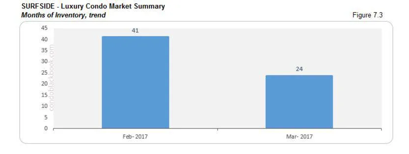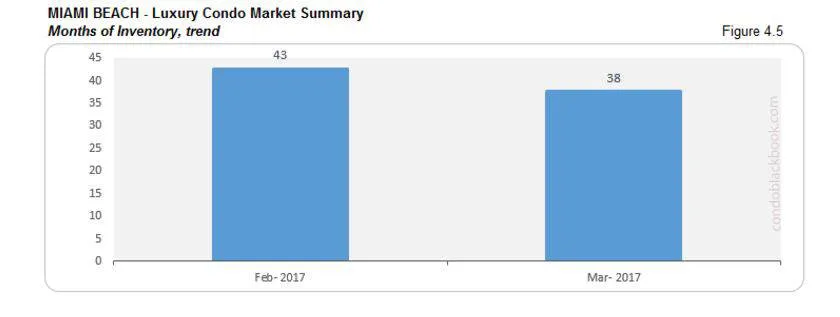 - Taking into account the average of 8 deals per month (based on last 6 months’ average), this family-friendly neighborhood north of South Beach now has 35 months worth of inventory, which shows an impressive 23% decrease (fig. 6.5) due to the jump in sales mentioned above.