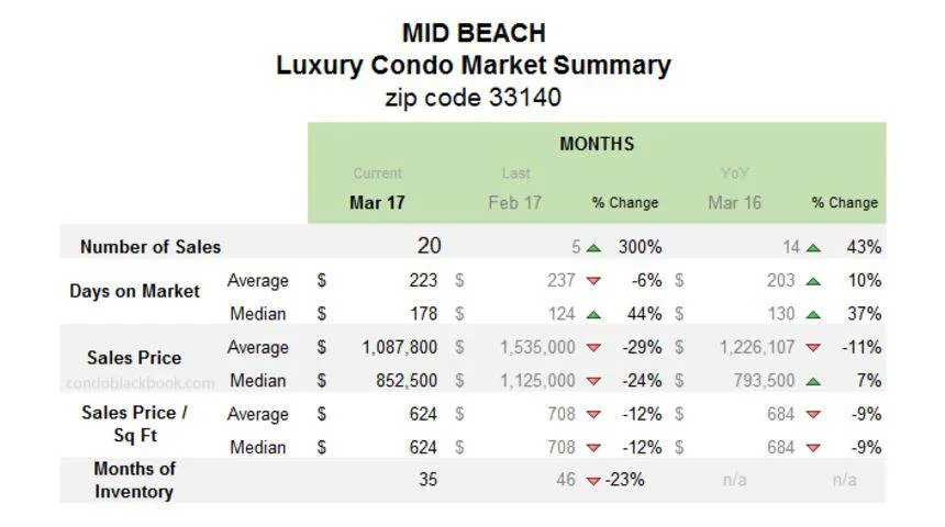 Mid-Beach Luxury Condo Market Summary (33140 zip)