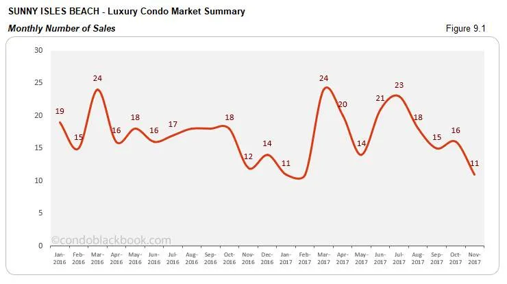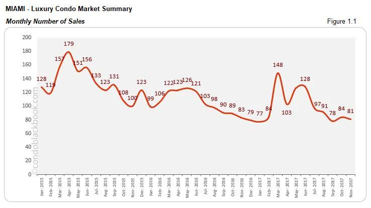 Monthly Number of Sales - Miami Luxury Condo Market Overall back to top