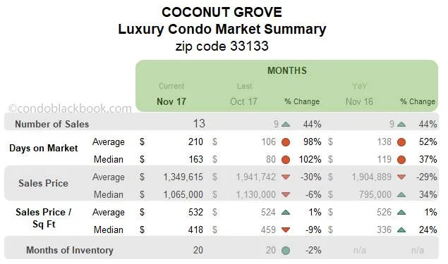 Coconut Grove Luxury Condo Market Summary (33133 zip) back to top
