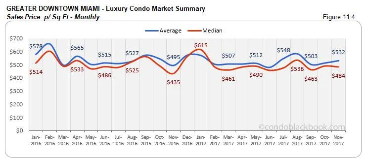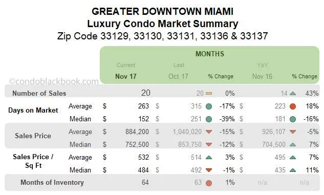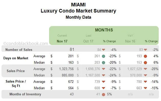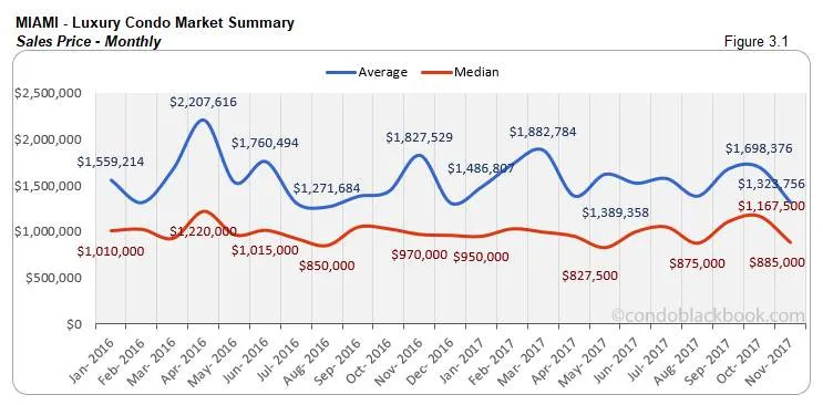 Below is an insight into Miami’s overall and neighborhood-level luxury condo trends for the month of November 2017: