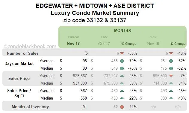 Edgewater + Midtown + A&E District Luxury Condo Market Summary (33132 + 33137 zip) back to top