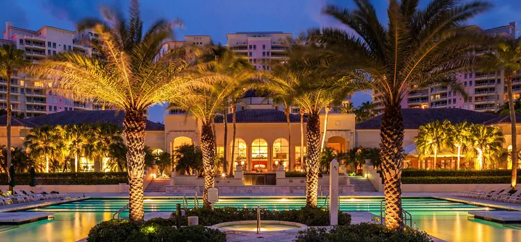 Spanning 52 acres of manicured grounds, the serene and modern Ocean Club houses 11 ultra-luxury, high-rise plus mid-rise condo towers – Lake Tower, Club Tower One, Club Tower Two, Club Tower Three, Lake Villa One, Lake Villa Two, Lake Villa Three, Ocean Tower One, Ocean Tower Two, Resort Villa One, Resort Villa Two. The sprawling, gated community features a beach club with 25,000 sq. ft. of indoor-outdoor recreation spaces, a private Palm Court dining area, a Beach Bar & Grill, eight lighted Har-Tru tennis courts, a health and fitness spa, an Olympic-sized grand pool with Jacuzzi, and zero-entry beach pool with two garden islands.