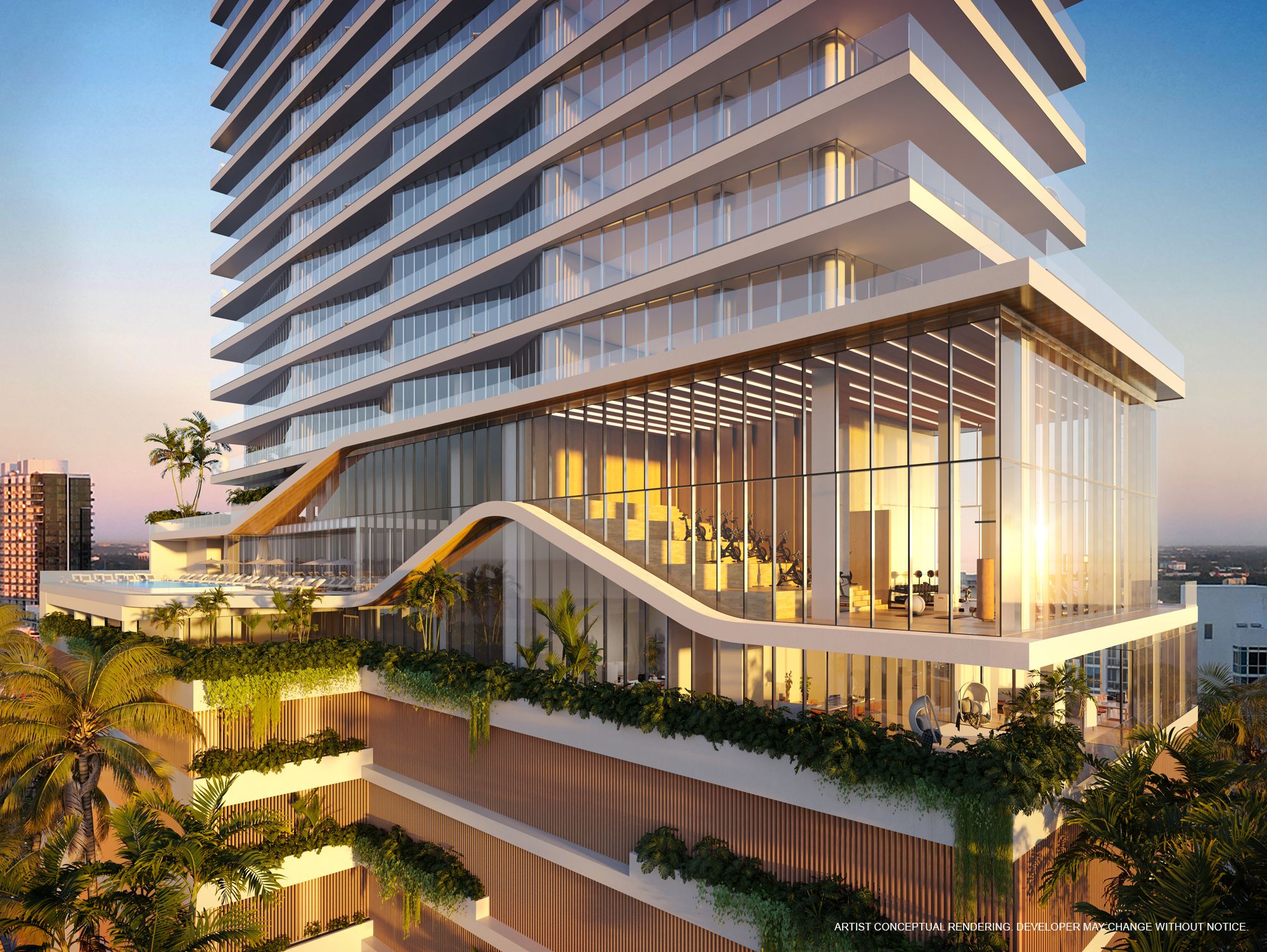 Highlight amenities include a resident-only sunrise lap pool, a sunset pool with cabanas and dining service, a variety of social lounges, an ocean-view fitness center, a library, a tea room, and landscaping by Switzerland-based ENEA. You will further enjoy coming home to a beach club, a private members’ club, a residents-only entertainment suite, and 15,000 square feet of curated street-level retail.