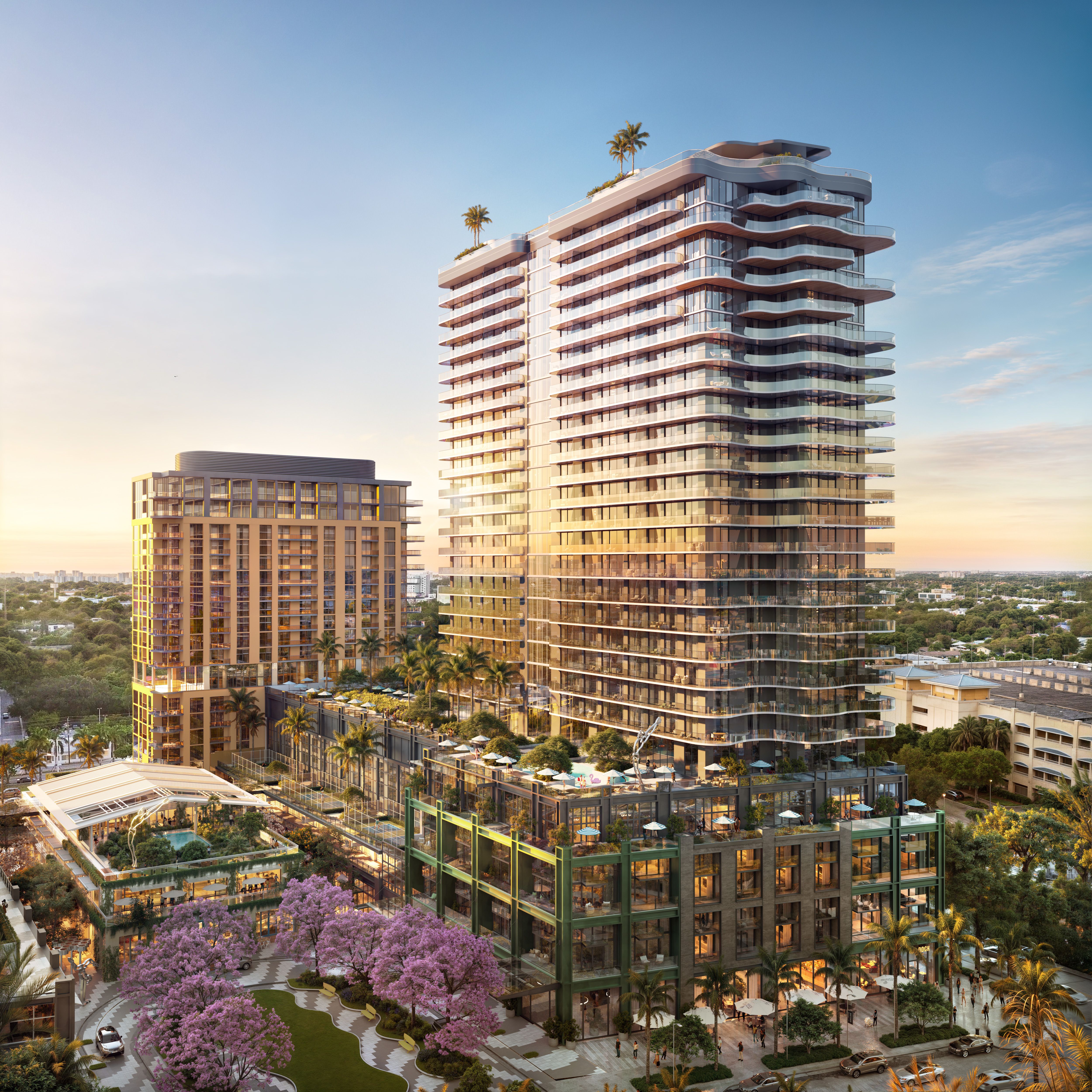 Together, these buildings will house 924 condos, 120,000 square feet of designer retail and vibrant restaurants, 60,000 square feet of office space, and a Padel Club by Ultra featuring eight world-class courts.