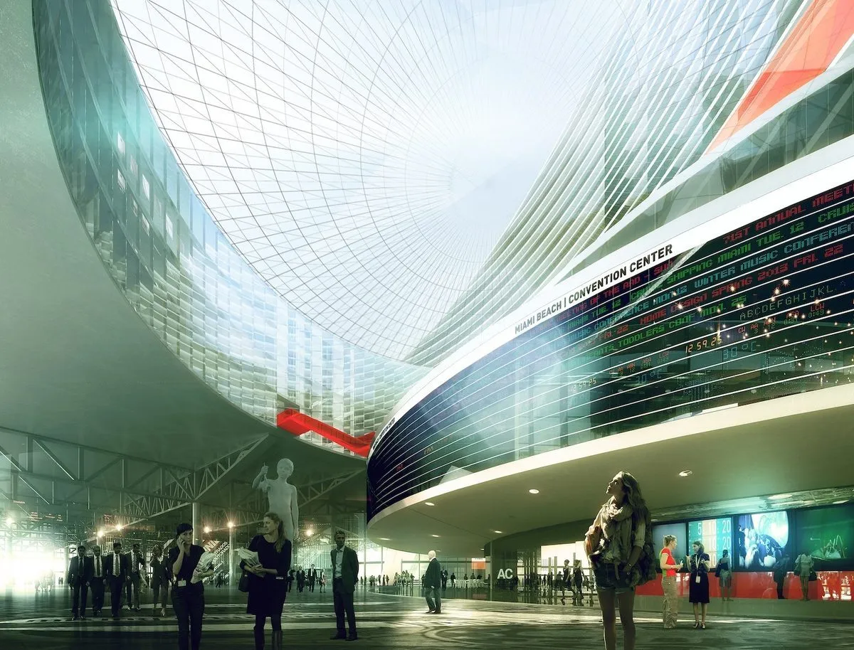 As the battle continues between the two teams vying for the development contract to renovate and expand Miami Beach’s convention center, finely tuned design changes and further refinements are being slung back and forth in a duel to the death between superstar architects Bjarke Ingles and Rem Koolhaas. As it stands, Miami Beach is still undecided on which development team to award its $1 billion contract to overhaul the convention center, add a ballroom, and generally spruce up the landscaping, residential units, and shopping in the area. The winning team are also expected to receive work designing and building an affordable hotel deemed necessary to attract a critical mass of conventioneers.