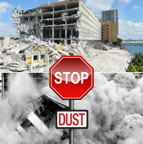 Demolition of the old Miami Herald headquarters has been halted by city officials over fear that dust and other hazards are present.