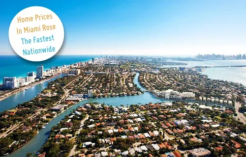 For the year 2014, Miami was second on the list of cities nationwide that had their home prices rise. Miami rose 8.4%, second only to San Fransisco with a rise of 9.3%. Nationwide, the average was a 4.6% increase in home prices.