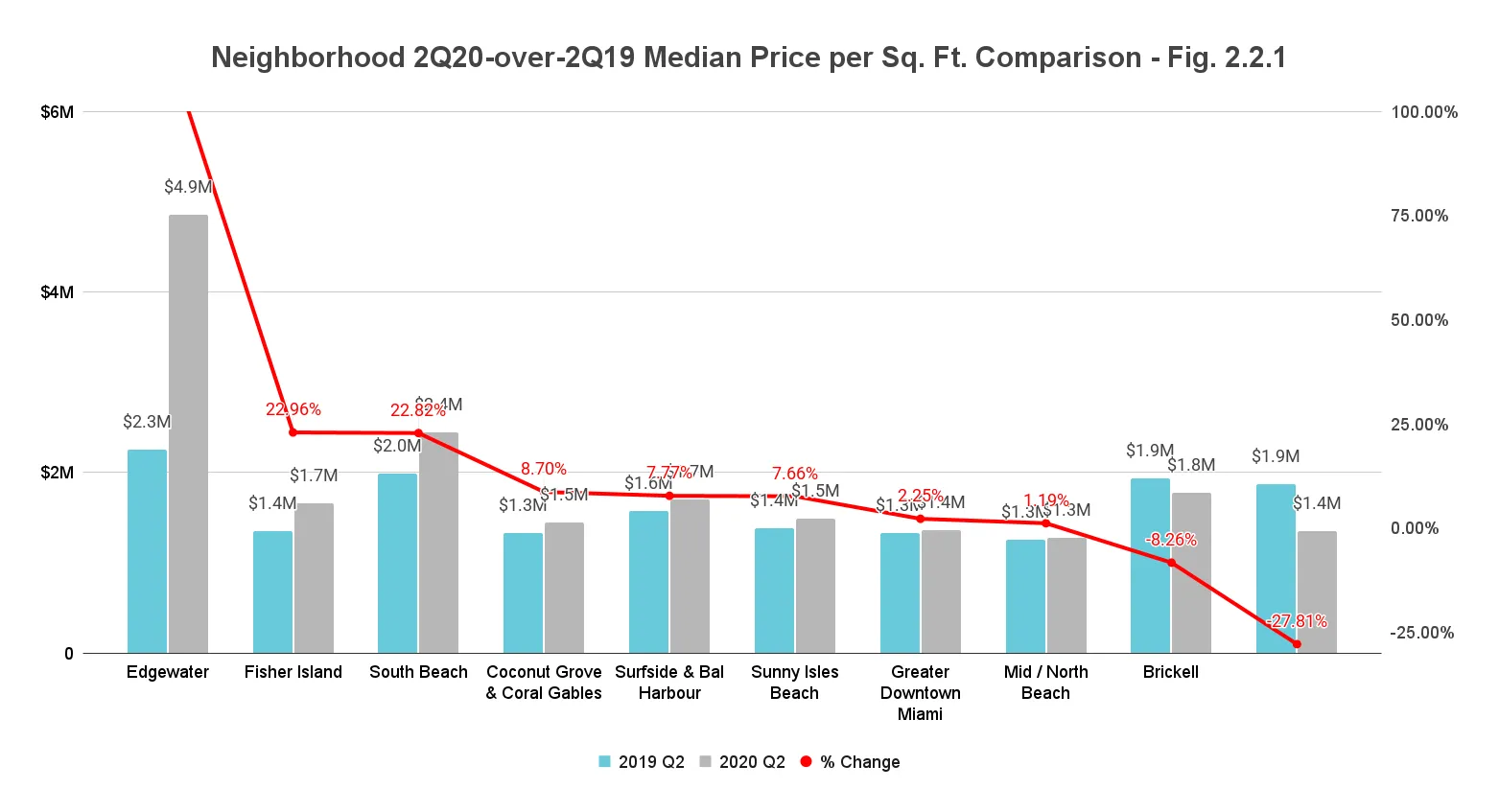 - Up: Other neighborhoods posting an increase in year-over-year Price per sq. ft. - Fisher Island (15.6%) and Mid-North Beach (6%)