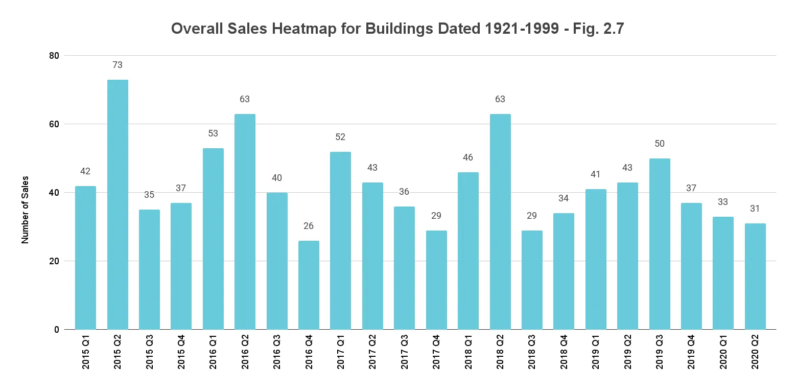 - Buildings built pre-2000 weather the pandemic best with lowest drop in year-over-year sales volume, while those condo buildings built 2000-2014 and 2015-2020 register declines