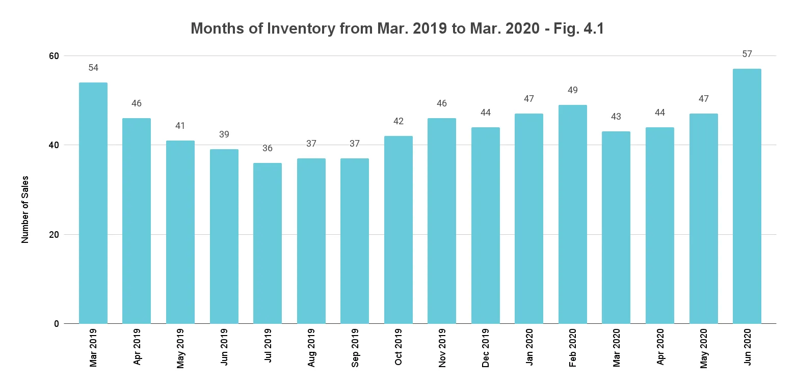 Q2 closes with 57 months of inventory. As expected, the sudden slowdown in sales due to the pandemic led to an increase in the active inventory of luxury condos. While the first quarter ended with 43 months' worth of inventory on the market, the second quarter posts an increase of 33% at 57 months.