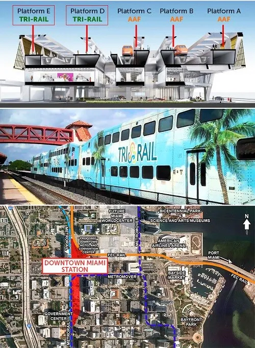 Photo credit: Station - miamitodayniews.com, Train - wikipedia.org, Map - transitmiami.com