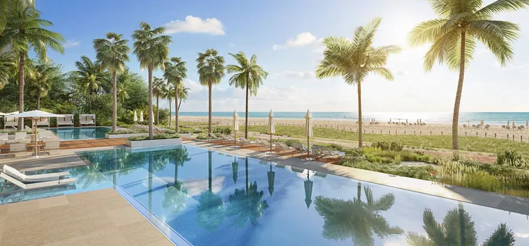 This two-tower, waterfront property rises 22 and 17 stories along 450 linear feet of pristine beachfront, housing 171 luxury condos. Residents get access to an array of indoor-outdoor amenities including a curated art collection, Auberge-branded dining and spa, multiple pools with cabanas, a Napa Valley wine room, signature cigar lounge, signature golf simulator, club room and more.