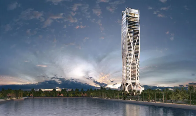 Part of the master-planned Worldcenter, this 569-unit tower will share the complex with 300,000 sq. ft. of retail, a 2,050-room hotel, up to 500,000 sq. ft. of office space, 500,000 sq. ft. of expo space and other residential developments. Amenities at this ultra-luxury tower include a 5,000 sq. ft. skyport for passenger drones, an outdoor soccer field, two tennis courts, golf simulator, jam room with recording studio, boxing gym, spa, salon, resort-style pools, conservatory and much more.