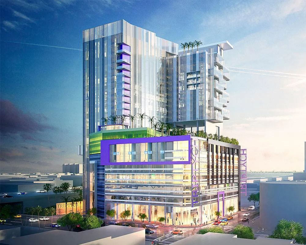 The upscale, multi-use Triptych Miami Design District is being co-developed by the HES Group and JQ in an attempt to tie together business, art and design. The 20-story luxury hotel will feature 296 rooms and suites, 40,000 square feet of business space and 38,000 square feet dedicated to retail. It will be part of the Curio Collection by Hilton.