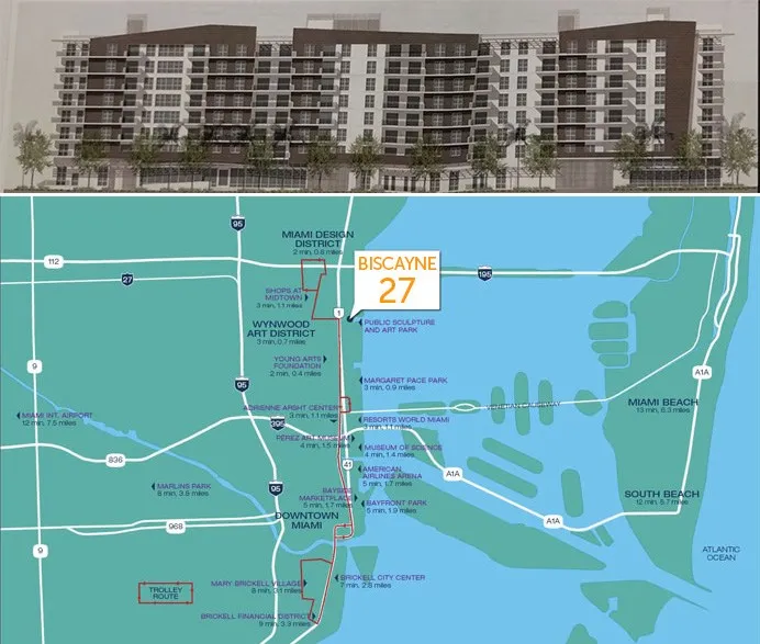 The building itself will only be eight stories tall, and will have smaller units, but there will be 330 of them, including 71 studio-size apartments. Biscayne 27 will also include a parking garage with 380 parking spaces, which Richman is trying to request a 30% parking requirement reduction.