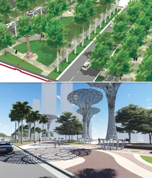 Biscayne Green, a plan designed by the Downtown Development Authority (DDA), will remove two lanes of traffic between Southeast Second Street and the AmericanAirlines Arena. The plan would also take away the parking spaces in the middle of the street in order to add pedestrian walkways and a park lined with trees. At its essence, Biscayne Green would make it much easier for people to get across the streets and get to the bay without having to fight traffic.