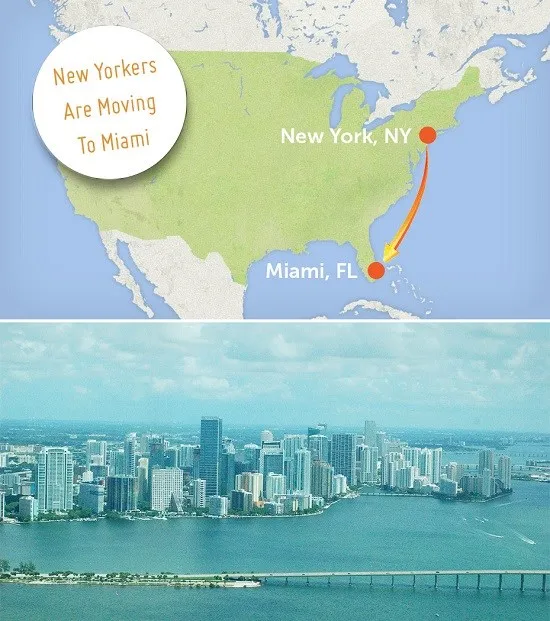 As far as metropolitan living goes, the New York to Miami transfer ranks as one of the top trends in the United States, according to U.S. Census's American Community Survey.