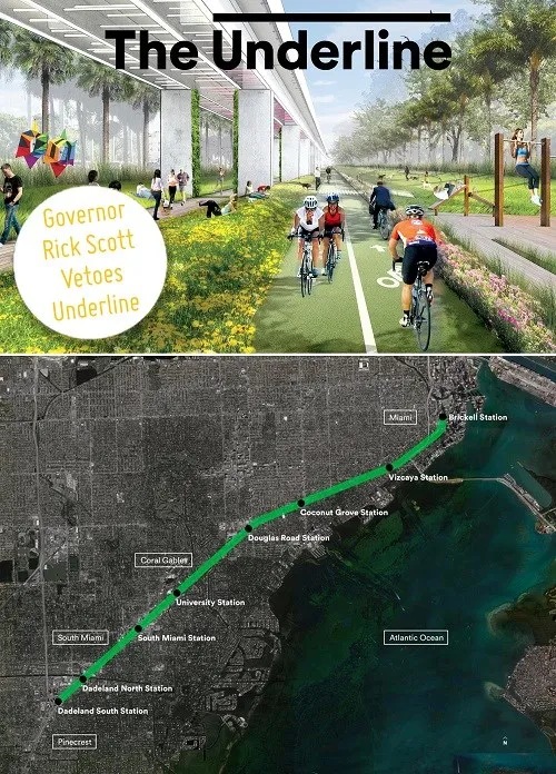 Governor Rick Scott has vetoed $461 million from the state budget in the course of a week, much of this was contributing to projects, such as the relocation of the Miami International Boat Show, and the Underline linear park planned for the area.