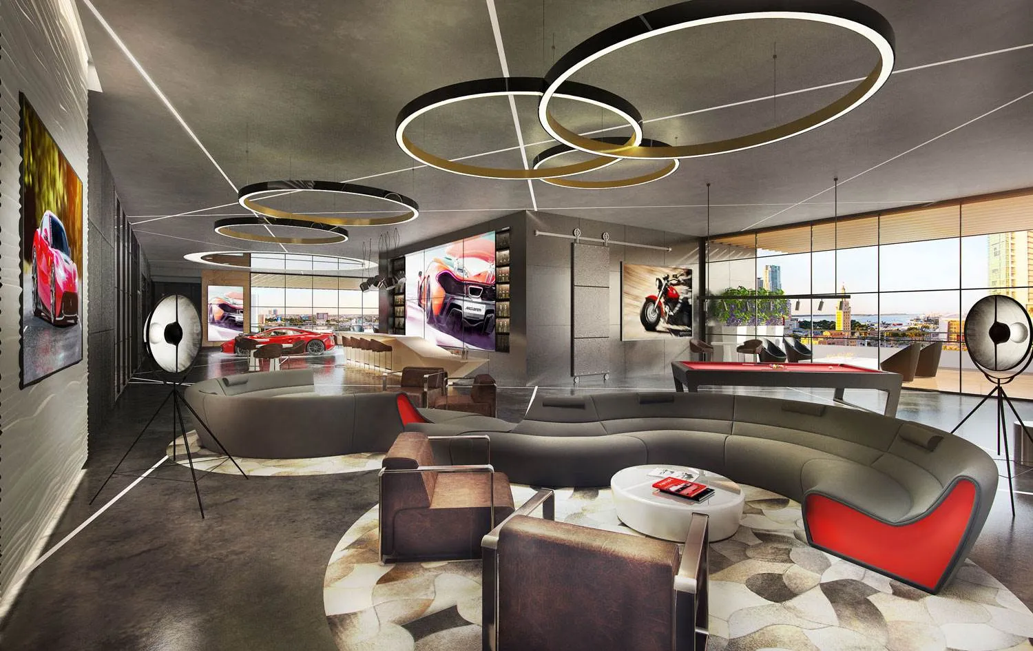Synthesis Architects is designing AutoHouse to be a sophisticated “man cave”. So, Auto Galleries (with room for 2-8 cars) will come with the option to include wet bars, audio-visual systems and other macho amenities. The penthouse-level social club will feature indoor and outdoor spaces including private dining and board rooms, a lounge, a Formula 1 simulator, and a fine wine and cigar storage.