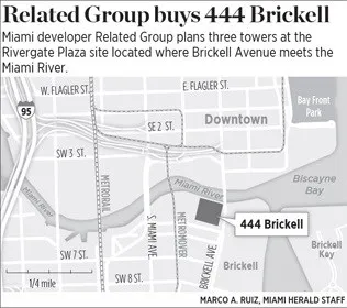 The Related Group plans to build a three-tower mixed-use project at the waterfront Brickell site it is about to acquire, The Real Deal has learned.
