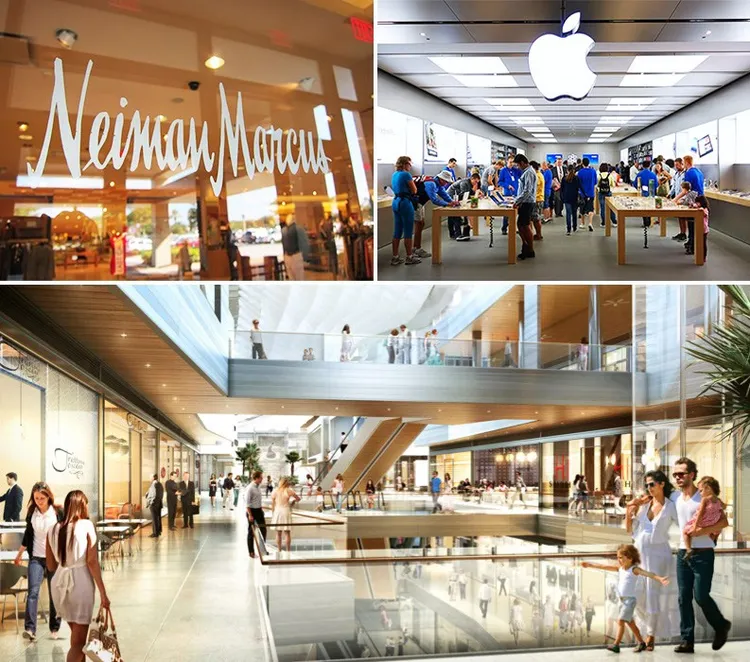 Photo credit: Brickell City Centre rendering - miami.curbed.com, Neiman Marcus - frugals.ca, Apple Store - buyric.com