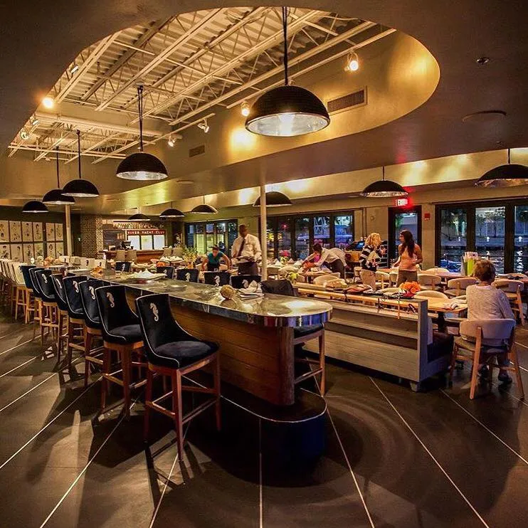 I came here a few months ago after a day of boating (didn’t dock, because I heard the docking fee is in the hundreds) and was pleasantly surprised to see such an elegant, yet welcoming outdoor area. They also have indoor seating with seafaring motifs sprinkled around. The menu features seafood, which you would expect considering the restaurant sits right on the river. The view and ambiance were fabulous. Food was great, portions were a bit scanty, but still delicious. The service was excellent too.