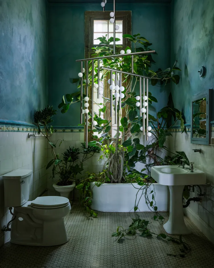 The 2,000-square-foot villa has been turned into an atmospheric showcase for designers like Lindsey Adelman, Faye Toogood, and Vikram Goyal, whose pieces sit against ochre plaster walls, stained glass, and the home’s original tiled floors. I love how it connects Miami’s layered history with a more experimental design edge.”