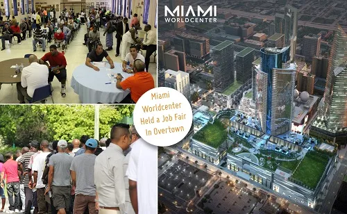 About 500 Miami residents were present, looking for opportunities to work, according to developers of the Miami Worldcenter. The residents living in Southeast Overtown, Park West, and the Omni Community Redevelopment areas had the top priority, followed by the Overtown community, then certain zip codes within the City of Miami and Miami-Dade County. The purpose was to fill the many jobs that will be necessary for the maintenance and operations of the Worldcenter project.